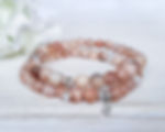 Das erste Armband ist angefertigt aus den Edelsteinen Lapislazuli, Angelit und Süsswasserzuchtperlen. Der dunkelblaue Lapislazuli stärkt den Charakter, steigert den Optimismus und das Selbstvertrauen und verbessert die Achtsamkeit. Der geologisch korrekte Name des hellblauen Angelit ist Anhydrit. Wegen seines schönen Blaus wurde er als Engelsstein (Angel) bezeichnet, daher der umgangssprachliche Name Angelit. Er sorgt für Stabilität und Sicherheit, hilft bei Belastungen und fördert die Bodenständigkeit.
